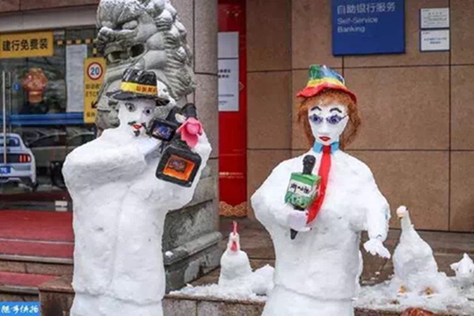 不少路过的市民也纷纷驻留欣赏,还给“雪人”拍照。