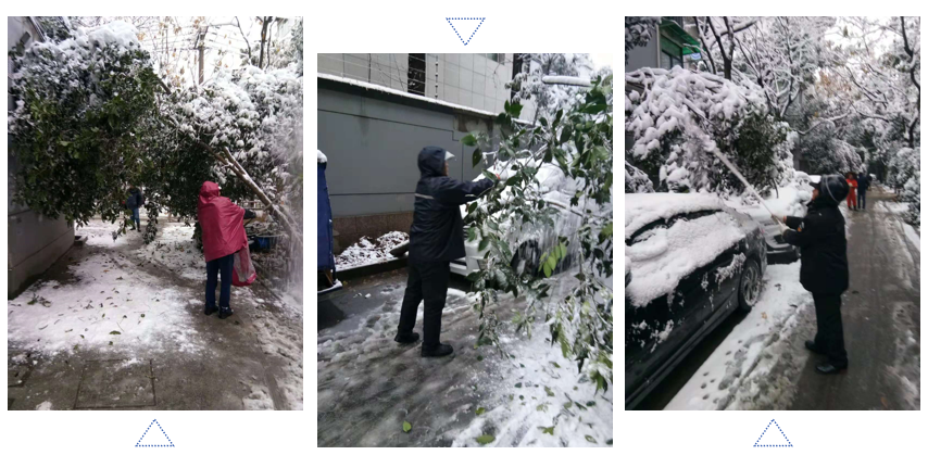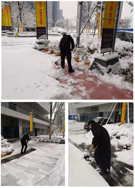 公司各级管理人员、保安员,不管男女老少,全都齐上阵,躬着身子,握着扫把、铁锹,除雪铲,一铲一扫的把雪扫到路的两旁,全力清扫园区主要出入道路上的积雪。有的保安头发上结了冰碴,而身上却冒着热汗,在寒冷的气温下,大家井然有序,大家没有叫苦叫累,放弃休息,齐心协力的打了一场漂亮的除雪仗。通过集体的努力很快积雪与结冰的路面渐渐呈现出本来面目,方便了行人及车辆安全出行。业主们看到保安员工这么卖力地清除积雪,也纷纷点赞表扬,感谢安保员工的辛苦付出。