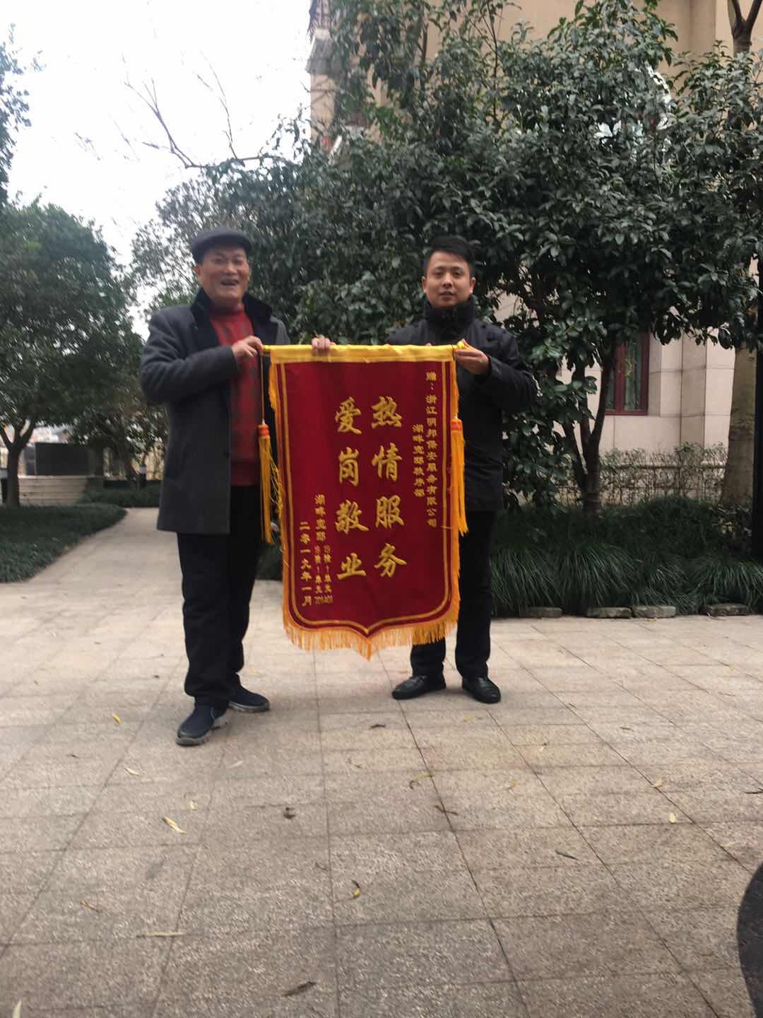 明邦保安公司驻点--湖畔宽邸中央郡,1月17日一大早就收到19幢1单元401陈老先生送来的锦旗,陈先生是原滨江区政府单位局长,平时我们亲切的称他为陈局,退休后和老伴生活在这里,儿女忙于各自工作,偶尔过来探望,老伴年纪大了并伴有腿部病状,时常疼痛行动不便,日常进出、购物,我司保安员都会主动亲切地上前搀扶、提物,家中有事也是我们第一时间上门处理,同时我们也会不定期的上门访问看望,让老人们感受我们的热情,享受冬日里我们的温情服务,为了表扬我们热情服务的精神,特赠送锦旗一面以示谢意及对我们工作的认可!