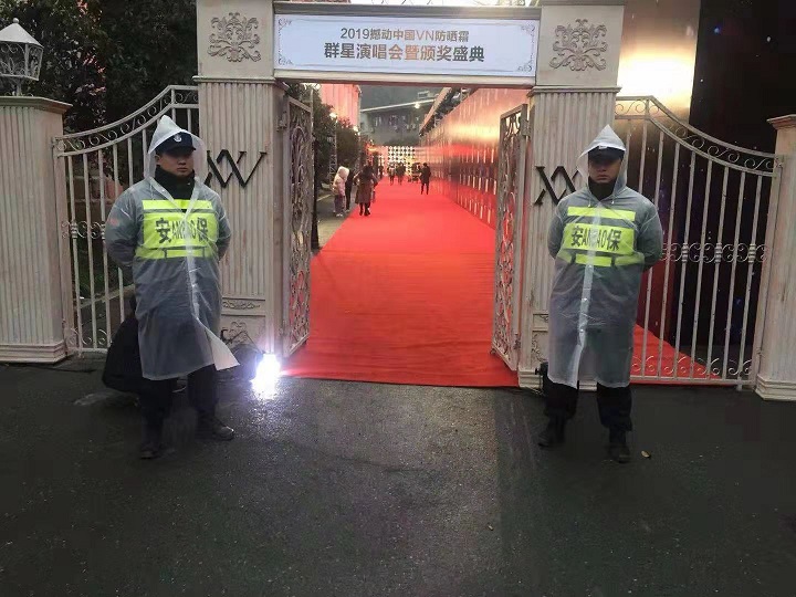 2月26日傍晚时分,瓢泼大雨如期而至。2019撼动中国群星演唱会暨颁奖典礼正在萧山太虚湖假日酒店隆重举行,德邦保安公司精心挑选的15名特保队员在现场担任活动安保和明星随身护卫工作。