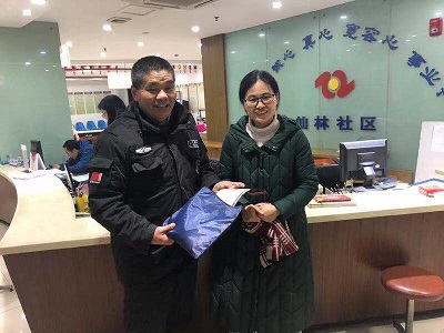 2019年2月13日清晨,时值新春,年味正浓。德邦保安公司驻杭州仙林社区的保安队员梁恒军沿着日常路线认真做着巡检工作,在行至社区垃圾管理用房附近时,发现地面上躺着一个鼓鼓囊囊的文件袋,打开一看,里面有一只手机、一些现金、医保卡、病历卡等物品。很明显,这是哪位早早出门去医院看病的居民在匆忙中遗失的。梁恒军队员急人所急,当即想方设法联系上了焦急万分的失主,第一时间归还了失物,获得社区居民们的交口称赞。
