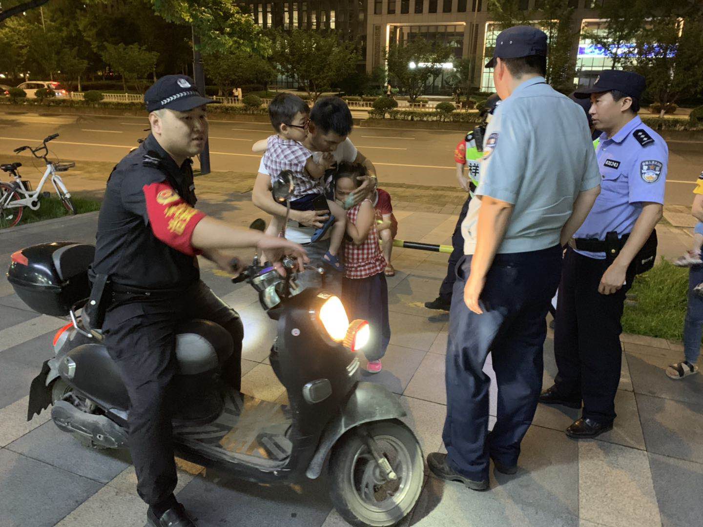 7月3日晚上8点半,杭州拱墅保安服务公司驻北部软件园的园区综合管理队员韩小龙和许梁刚巡逻至北海公园时,对讲机响了起来:“网新银行这里走失一名8岁女童!附近巡逻人员马上前去支援!”此时天色已黑,附近又是高架又是施工,来往大型车辆众多,孩子走失十分危险。他们回复后立即骑着巡逻电动车赶往现场。
