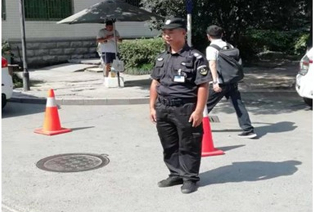 这只是驻医院保安队工作的一个缩影,还有许多保安正坚守岗位,为维护医院平安环境默默奉献着,他们有的在巡逻,有的在看监控,有的正在帮助行动不便的患者就医,保安服湿了又干、干了又湿…在高温的洗礼下,他们为人民服务的初心越来越澄净,他们是安保集团新时代保安队伍,他们在践行服务的道路上,不畏挑战,一往无前。