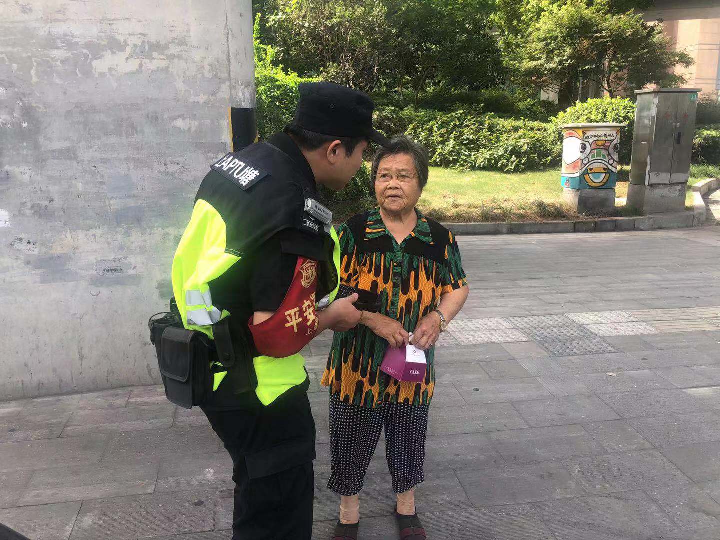 7月27日上午,上塘派出所接到热心群众报警求助,称有一位老人迷路。杭州拱墅保安服务公司驻上塘派出所特保文超、邵建庆第一时间赶到现场,发现是一位老奶奶。文超上前询问老奶奶姓名、住址和家人联系方式,但是老奶奶表示记不太清了。