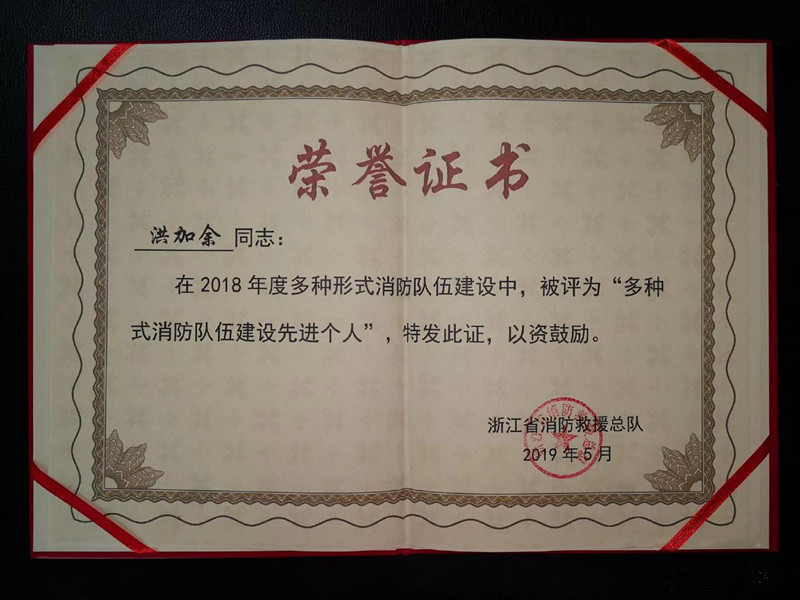我司保安员洪加余2013年加入公司,从一名普通的保安员成长为一名优秀保安队长,他始终严格要求自己,努力工作,在平凡的岗位上作出了不平凡的贡献。因为工作的特殊性,洪加余经常组织队员开展岗位练兵活动,并和队员们定期开展消防安全演练,注重做好消控室的点检,使消防主机处于正常工作状态,一旦发生火警,迅速正确处置,多次快速成功扑灭火灾。此外,在巡逻过程中不放过任何一个可疑点,在洪队长的带领下,队上的十余名保安队员工作热情高涨,其本人的工作也得到了上级主管部门的认可,被评为“多种式消防队伍建设先进个人”。