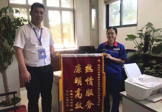 在“七一”、“八一”等重要节日期间,在近期高温酷暑期间,烟厂中队指派的保安队员在转塘区域加油站始终坚守岗位,恪尽职守,为加油站的安全维稳工作做出了贡献,连续收到客户锦旗表示感谢。