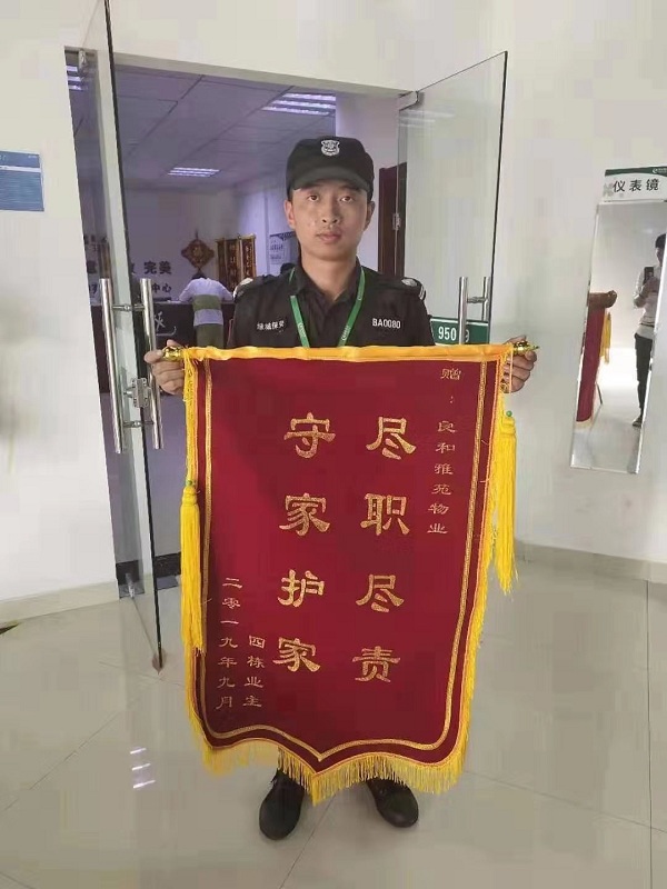 事后,9月30日上午,业主到海上海保安队送上一面锦旗,以表示对绿城保安队员英勇救火的感谢,业主由衷的感叹:绿城保安尽职尽责,守家护家,有这样的保安队员守护我们的小区,我们可以放心了。