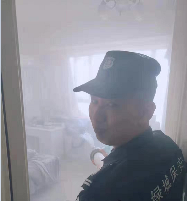 2019年9月28日8点29分,浙江绿城保安服务有限公司海上海保安队队长接到监控室通知,园区3幢2704室有烟感报警,保安队长立刻通知巡逻岗保安队员朱读金、熊汪洋抄起赶到现场查明火源情况。朱读金、熊汪洋接到指示抄起灭火器狂奔跑到业主家内,据了解是业主在家里点蚊香,不小心忘记,把衣服烧着了。巡逻岗队员朱读金、熊汪洋拿起灭火器向火焰根部喷射,由于火情蔓延较快,及时抽出水带将火浇灭,无人员伤亡。