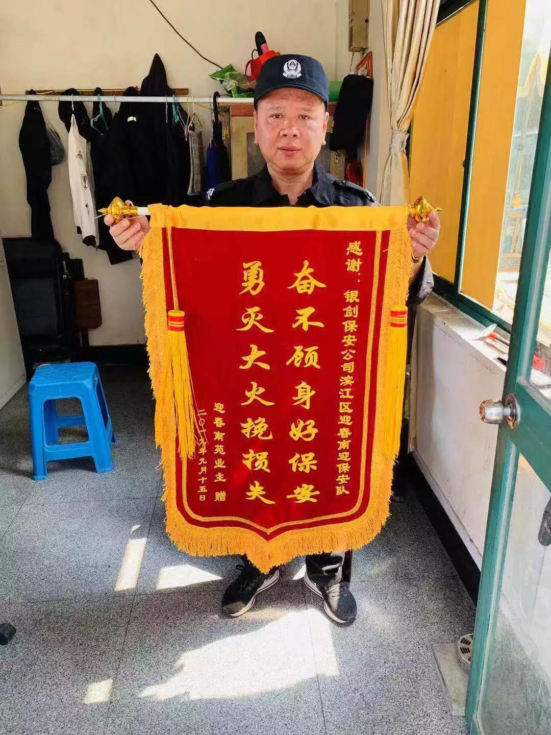 此次保安员救火行动受到了领导们的一致好评,迎春南苑物业送来了锦旗表示感谢。