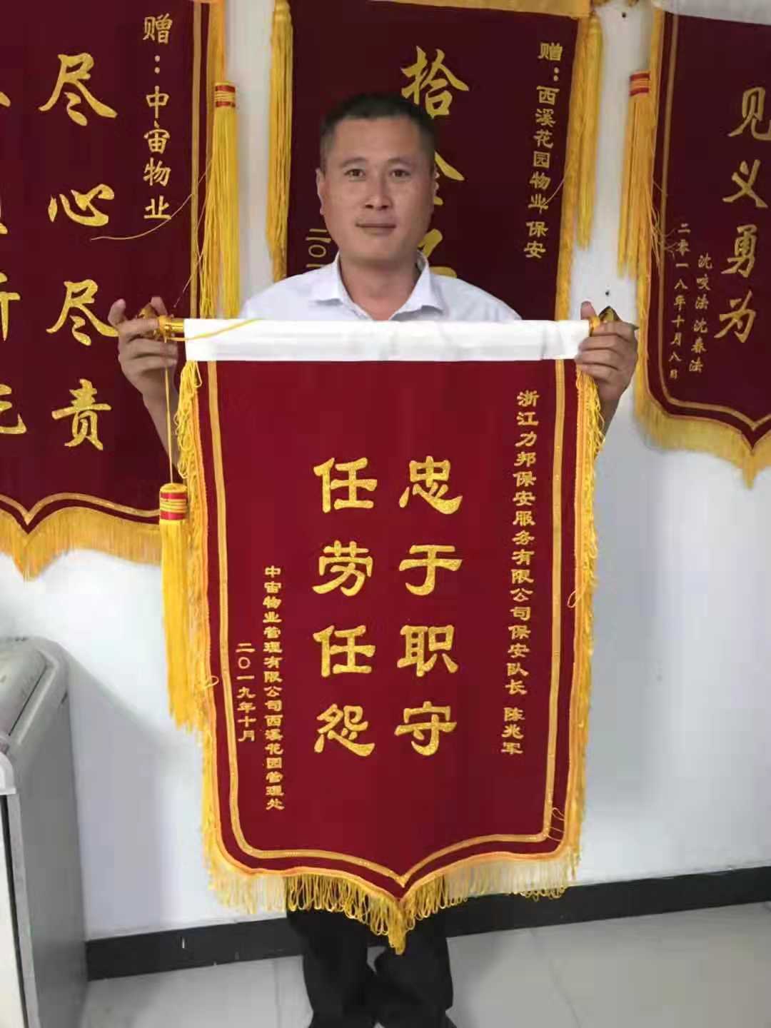 陈兆军,2016年12月加入浙江力邦保安服务有限公司从事保安工作,他从最基层的一名普通保安员干起,通过自己的努力,以高质量的服务和强烈的责任心获得了客户的信赖和表彰,成为公司信任、客户认可的优秀保安队长。