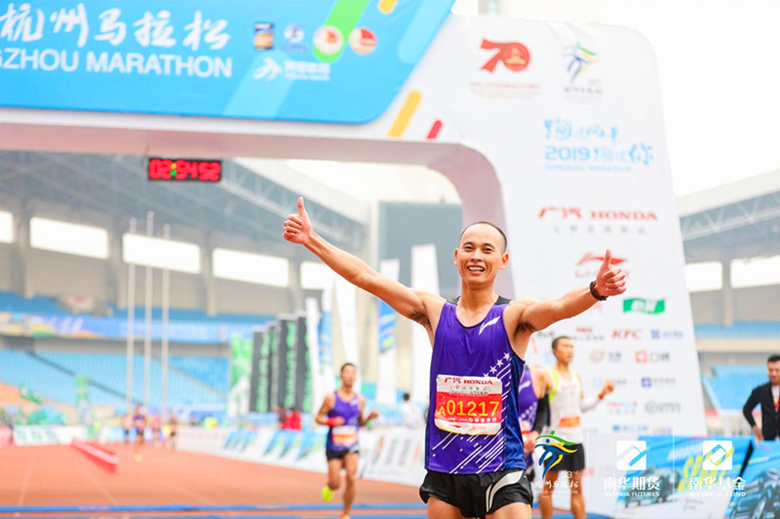11月3日7时30分,2019杭州马拉松在杭州黄龙体育中心广场鸣枪开跑。本届杭马赛事延续“跑过风景跑过你”主题,有来自58个国家和地区约3.6万名中外选手参加,其中1.7万人参加杭马全程赛。浙江卫邦保安公司督查员毛声建经顽强拼搏,以2小时54分30秒的优异成绩跑完全程,获得第189的好名次,在业余选手中名列前茅。