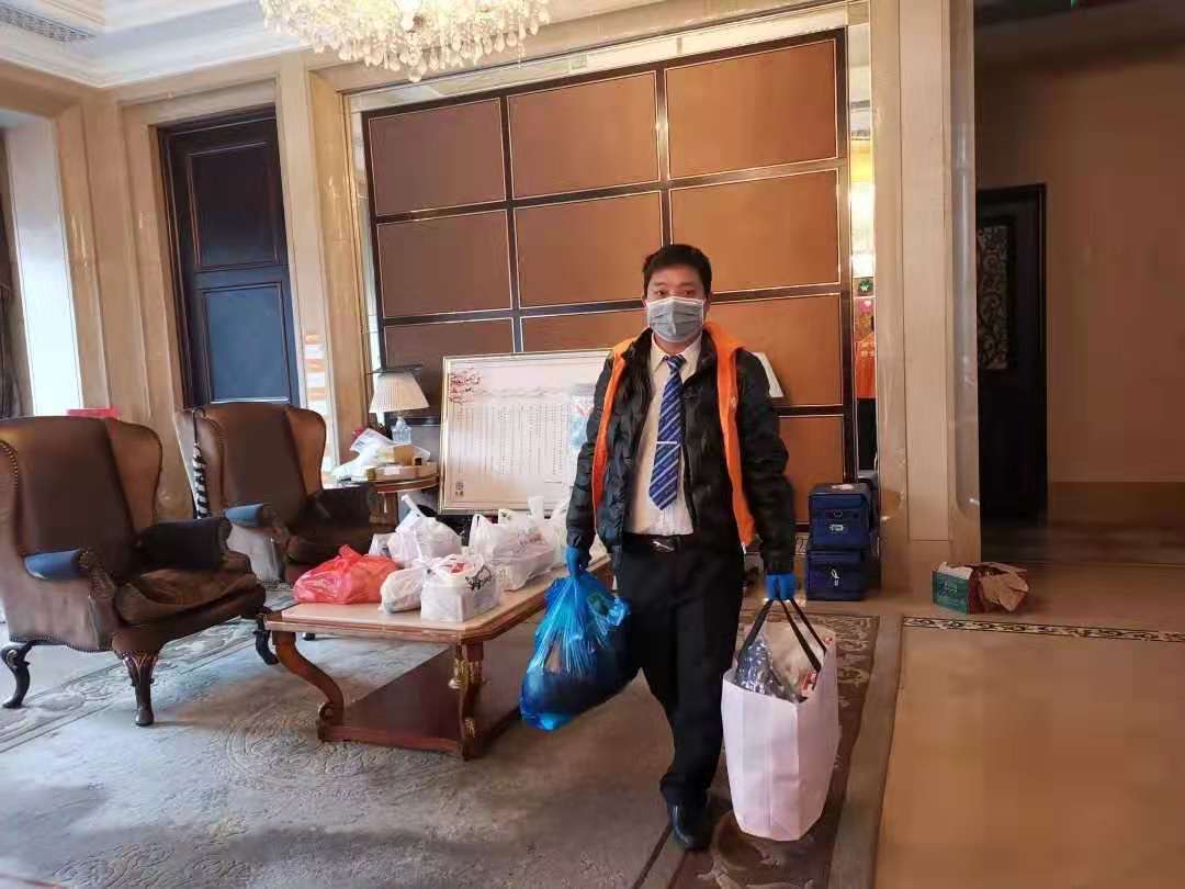 紧急制作购物业主和工作业主两个类别的出入证,既方便了业主们每两天一个家庭一人一次外出购物,也方便了需要工作人群的正常出入。居家医学观察的业主,由自己和队员们担任“外卖员”的角色,新华园有21户业主被隔离,每天袁亮亮让隔离的业主列出购物清单,和队员一起采购,将物品打包亲自送到业主家门口,再将业主家的垃圾统一送到垃圾分类处……每天楼上楼下,经常汗如雨下,袁亮亮缺乐此不疲,“业主就是我的家人,为家人服务,保障家人的安全,是我义不容辞的责任”……朴实的话语,道尽了浓浓的深情。