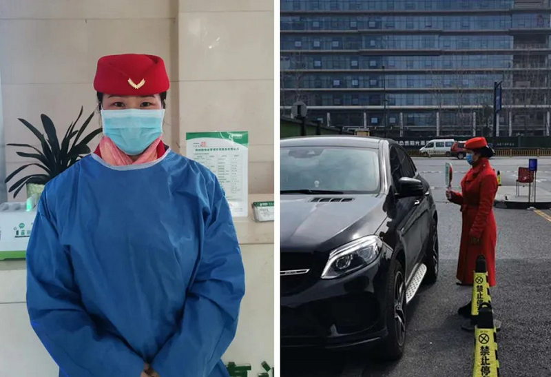 红呢裙子、空姐帽,这是绿城女保安的标配,也是王彩云每天的行头。新冠肺炎疫情爆发后,王彩云和项目上其它的男性保安一样,坚守项目门岗,为出入的业主测量温度,做好门岗的出入人员把控防。护服遮住了红呢裙子,口罩掩盖了脸庞,口罩金属丝,也勒住了微笑的神经线路。
