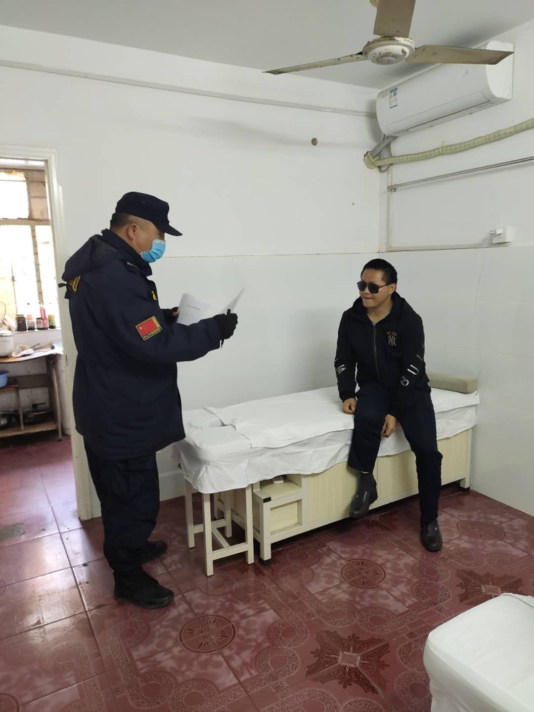 两天前,中山东路中队在对甬港北路进行巡查时,发现这条路段上的一家盲人推拿所开门了,老板一人坐在里面发着呆,一动不动。心生疑惑的中队队员马冬推门走了进去。