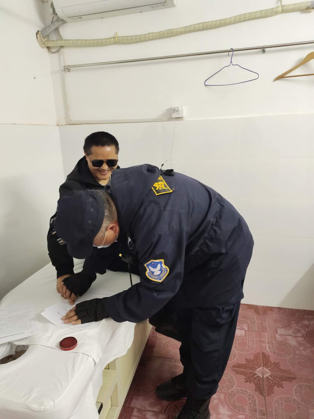 鄞州局记者李佳静、通讯员张慧报道:你看不见,我来帮。3月18日,在甬港北路上的一家盲人推拿所,盲人老板紧紧握着鄞州区综合行政执法局中山东路中队鸿民保安服务集团的特保队员马冬的手激动地说道,“虽然我看不见,但我记住了你的声音。”