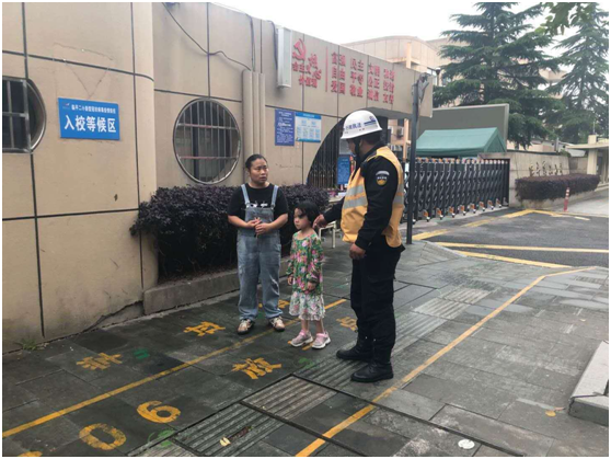 当天下午3:30左右,张艮振在九曲营路临平第二小学附近巡逻时看到一名小女孩独自一人站在路边哭泣。张艮振立即来到小女孩跟前,蹲下来柔声问道:“小妹妹,你是不是找不到爸爸妈妈了。”小女孩哭着连连点头。