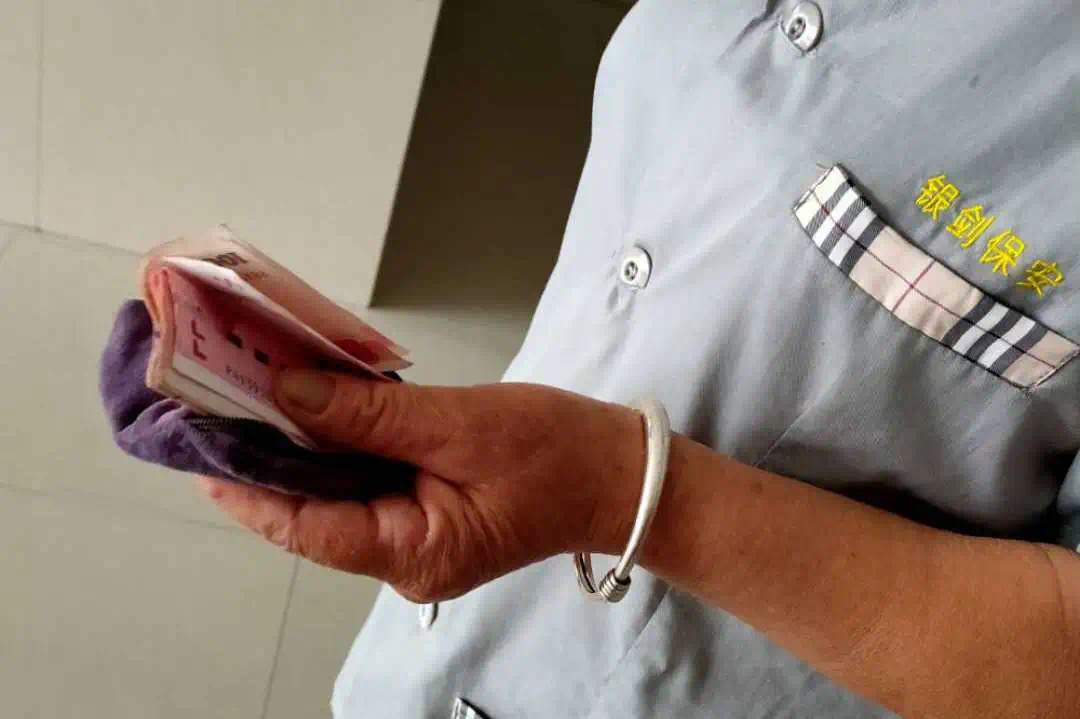 陈阿姨在坎山卫生院负责保洁工作,工作中她勤勤恳恳,和善沉稳,是这里人人称道的热心阿姨。那天正在做坎山卫生院日常打扫清洁的陈阿姨看到角落里有一个紫色的布袋,袋子不大,但是鼓囊囊的。她捡起来才发现原来这是里面装有数百元钱的手工钱包。