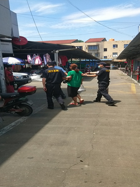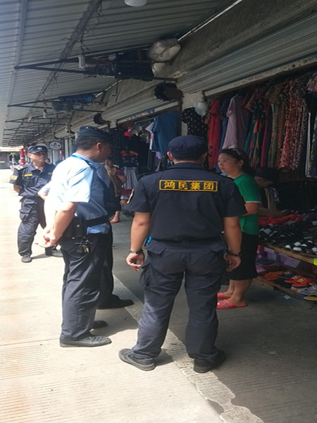 6月12号上午十点二十分左右,鸿民安保队员王要宗在市场巡逻,路过卖衣服的店铺,看到一个穿绿色上衣的长发女,胳膊里夹着一件红色衣服,拐弯往桥头方向匆匆忙忙走去,当时只听到老板叫:拦住她,王要宗就快步上前及时的拦住了她。经查询,这件衣服是她从店铺老板那里面偷出来的,王要宗第一时间通知了队员李先青,让他赶到现场跟他一起控制住了犯罪分子,衣服店老板报了警,队员杨胜波闻讯也赶到,队员们拍了照片和视频留证,等待警方过来处理,在此过程中,那女子一直想要逃脱,被队员们拖住,一直等到警方来了以后,队员们协同警方一起把她送上了警车。
