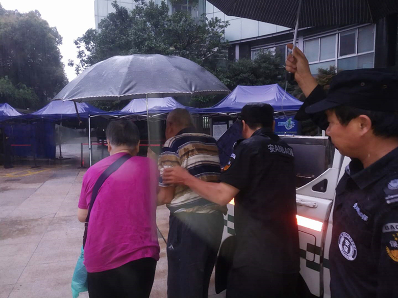 2020年6月25日早晨5点35分左右,大雨倾盆。浙江卫邦保安公司驻城管望江中队邓文辉、葛先雨、叶帅三名保安员在富春路与近江南路附近巡查时,发现一位老大爷倒在雨中,瑟瑟发抖,无法动弹。他们给老人撑伞挡雨,并立即拨打了120,第一时间将老人送至市一医院进行救治,经了解系突发性脑梗,幸抢救及时,老人很快脱离生命危险。事后老人家属特意赶到保安中队表示感谢。