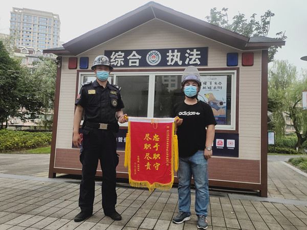 基于感谢,失主给鸿民集团与鄞州区综合行政执法大队中山东路中队都分别赠送了锦旗,集团领导对这种拾金不昧的正能量行为给予了高度的赞扬和鼓励,并希望这种正能量的行为在集团发扬光大。孙根柱他平时工作认真负责,为人勤恳,他的善举,就是一种爱的传递,用言行把善传递给别人,此时,在锦旗的映衬下,他高大的身影更高大了!