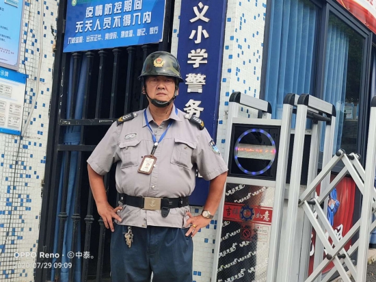 盛金浩同志于2010年5月入职富阳保安公司担任校保一职。因为考虑到上下班路途安全,公司将其派至离家就近的银湖街道新义小学。这一做就是十年,盛金浩同志用高尚的职业道德与过硬的职业素质坚守岗位、履职尽责。不管刮风下雨十年如一日,盛金浩同志上班从不迟到,与同事相处融洽,从不计个人得失。在今年的抗疫战中表现突出,多次参与各项临时安保任务,并获得优秀保安员荣誉称号。