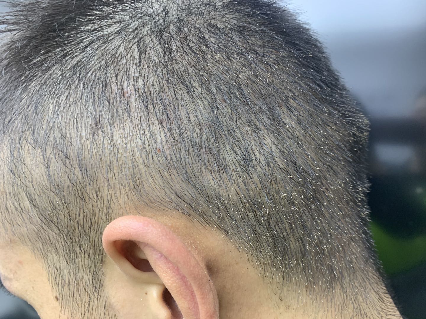 灭火后,由于没来得及用防护用品遮住口鼻,吸入了一些干粉和烟雾的徐立峰喉咙明显感到了不适并开始呕吐,后脑的头发也被火烧着了一部分。