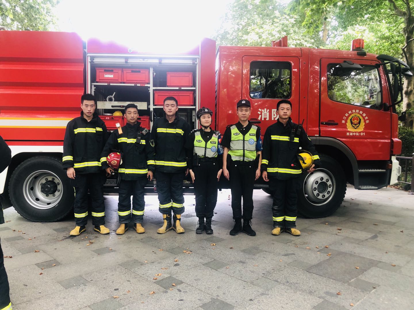 “快来人呐!着火啦、着火啦!”2020年8月7日上午9点10分左右,公司派驻在景区公安分局景安巡逻队的队员徐立峰、徐杭玲,如往常一样,从西湖北线骑巡回来到西子驿站交接岗。刚完成交接岗不到20分钟,就听到群众呼救声。