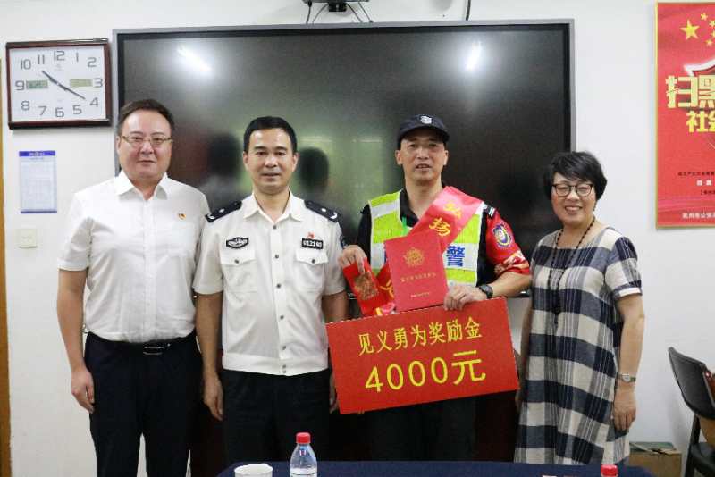 2020年8月27日上午,杭州市见义勇为基金会常务副理事长宋谊平一行专程到柳浪派出所对跳水救人的景区保安公司派驻在柳浪派出所的特保队员潘明贤进行表彰奖励,授予其“杭州市见义勇为积极分子”荣誉称号并颁发荣誉证书及奖金。
