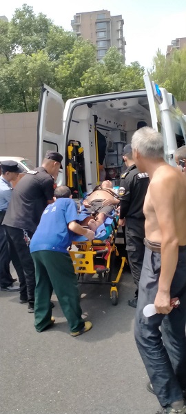 看到此番情景,队员王尊救人心切,连衣服都没来得及脱就跳入河中,奋力向老人游去。队长张昭迅速做出安排,让另外两名队员去寻找救助器材,他自己则拨打120救护车,并留在岸边协助。队员武旭找来绳索和扶梯,协助救人。这个时候,王尊已经游到溺水老人的身边,双手托起老人,由于老人体格较为健壮,王尊累了只能用肩膀来扛,自己却只能不时沉入水中换气。经过大家的不懈努力,终于及时将老人救上了岸。上岸后,队员对老人进行检查,发现他心跳正常,嘴里无异物,呼吸急促,处于半昏迷状态。没一会儿,救护车到了,队员们协助医护人员将老人送上救护车。目前老人还在医院观察,无生命危险。事后才发现,王尊的手机也因为救人心切,被水浸泡坏了。