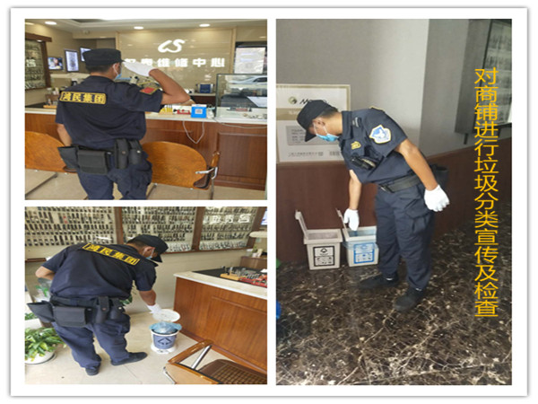 宁波中山东路鄞州段道路沿线共有各类商铺453家,其中世纪东方广场、新世界百货等大型综合体3个,大型综合公园1座等,处于繁华商业地段,是鸿民保安集团宁波分公司所管辖区域,为坚持倡导绿色环保、有机生活及资源转化等综合建设,集团副总裁兼宁波分公司总经理万军,为将疫情防控与垃圾分类实施两手抓做好准备,全面启动以点带面推进垃圾分类工作。严格按照指示精神每天对沿线商家进行督促、不留死角,每周把所有商家全部排查一遍,不停地督促不达标不按规定的商家进行整改。垃圾分类刚开始的确很多商家不太清楚具体分类知识。存在混装混放、垃圾分类不够纯净等问题,序化队员们耐心讲解,经过队员们连续几个月的劝导和帮助,逐步渗透,推动商家实现从行为规范到价值观内化的转变。目前均已合格的做好了垃圾分类,收集及处理成为一种生活态度与习惯,市场环境得到了很大的提升。尤其是疫情期间更是做好分类宣传工作,主要针对复工店铺和企业,严格落实好废弃口罩、手套等医疗防护消毒用品,要包扎好在投入垃圾桶,并告知其他垃圾桶一定要套好垃圾袋。以避免二次污染。做到街面序化、绿化管养、环卫保洁等实现墙对墙、边到边、全覆盖、无盲点的全区域管理。