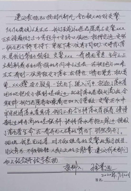 如果不是爆料人的表扬信及之后的多番查访,我们可能至今仍不知道这位交通协管员的义举……虽然事情已过去近一周,我们依然想说一句,“您奋不顾身跳入水中的样子,真帅!”