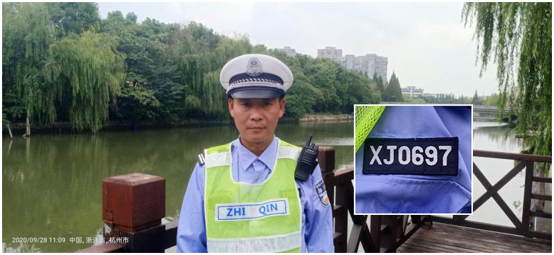 2020年9月19日下午6时左右,浙江保通安保服务有限公司派驻杭州余杭城市开发建设有限公司交通协管员戴月飞(编号:XJ0697)和往常一样在塘栖镇绿荫街与小芳超市十字路口值勤,突然一辆白色轿车停下,一位男子急匆匆下车大呼有人落水,需要我们帮助相救。