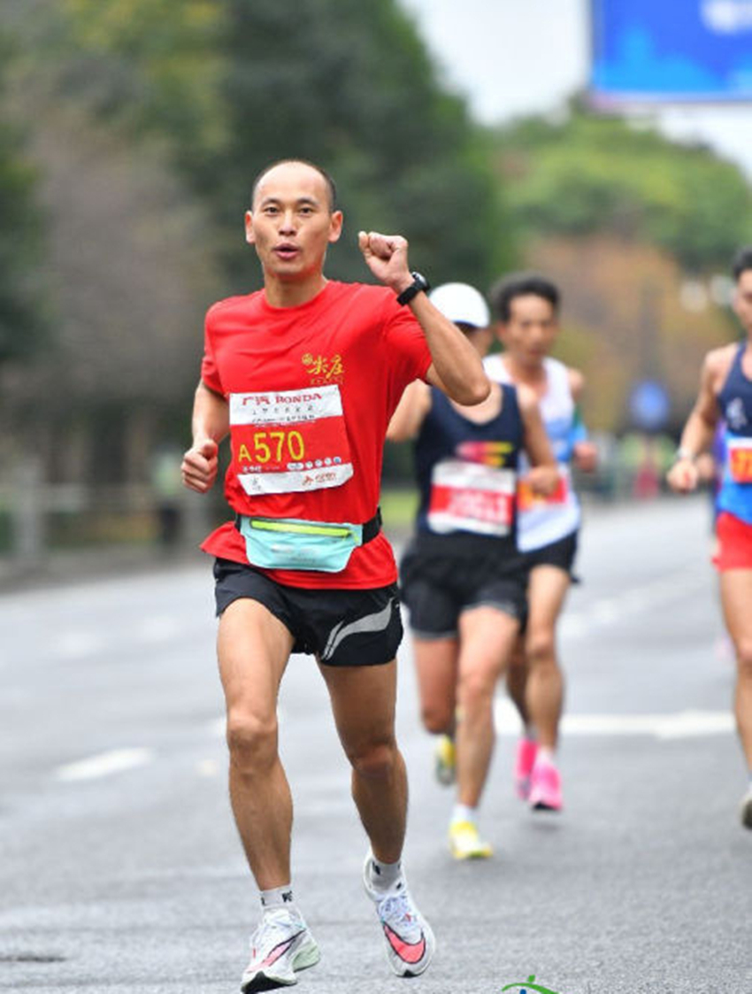 2020杭州万人马拉松于11月22日7时30分在武林广场开跑,浙江卫邦保安公司督察队长毛声建参赛挑战自我,经过顽强拼搏以2小时43分32秒(第74名)的优异成绩跑完全程,冲进英雄榜百强,他是保安队伍中的勇敢者。