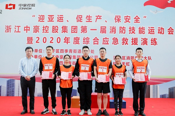 “迎亚运 促生产 保安全”浙江中豪控股集团第一届消防技能运动会暨2020年度综合应急救援演练于2020年11月18日(周三)下午2:00在杭州市江干区凤起东路207号中豪五福天地一楼南广场隆重启幕。浙江德邦保安服务有限公司驻中豪物业保安队参加此次比赛。 比赛分为15米原地着装、灭火器接力灭火、消防水带连续出水打靶、高层疏散、知识竞赛等项目。所有参赛队员们都精神饱满、准备充分,以十足的热情投入到比赛中。德邦保安的杨灵俊、孙佳涛、张志华、于跃天在多个项目中取得前几名的好成绩。
