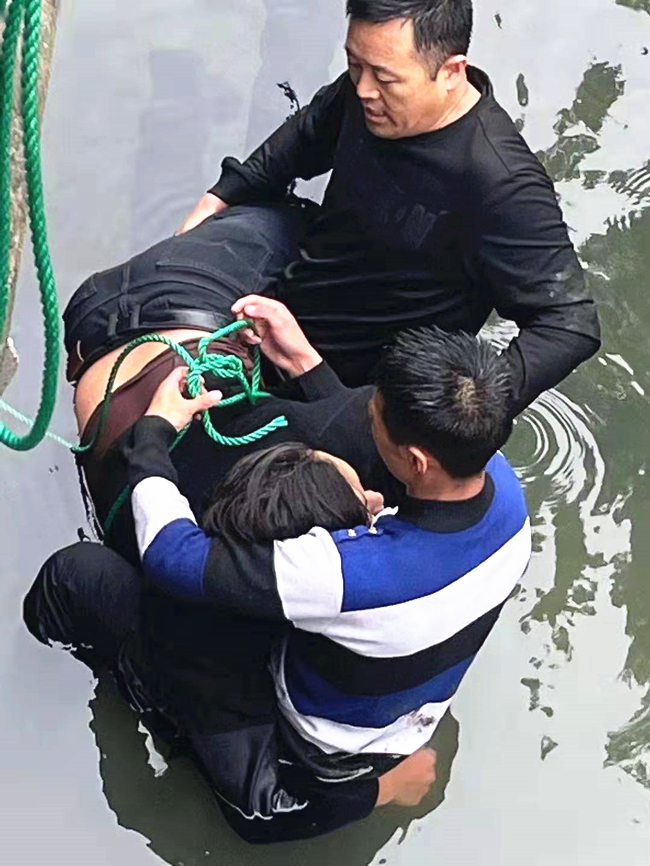虽然情况紧急,但是队员们因为平时公司的严格训练,都有着丰富的应急经验,后续赶到的队员们马上分工合作,有的去找来绳子、梯子,有的在岸上使力,减轻托举队员的负担,等工具拿来后,大家合力将男子和跳水的队员一一拉出水面,队员还马上脱下大衣给男子取暖,后勤保安员已经把暖暖的姜汤拿来给大家驱寒。