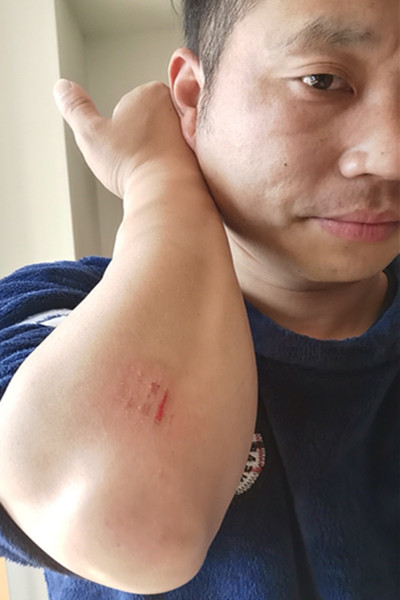 要不是我看到他不停的揉手,一再地追问,他也许就把这件事像以往救助跳楼轻生者一样就烂在肚子里了。我和他说:“这是好人好事,是弘扬社会主义正能量的,怎么可以这么低调呢,说出来让更多的人以你为榜样,关键时刻能跳将出来见义勇为呀!”杨峰谦虚地说:“真没什么好讲的,这在我们安保工作中是例行的共识而已,见义勇为,救助他人的生命,这种职责已经深入在我们安保队员的血液里了,它是在突发事件面前不假思索的惯性动作了。”