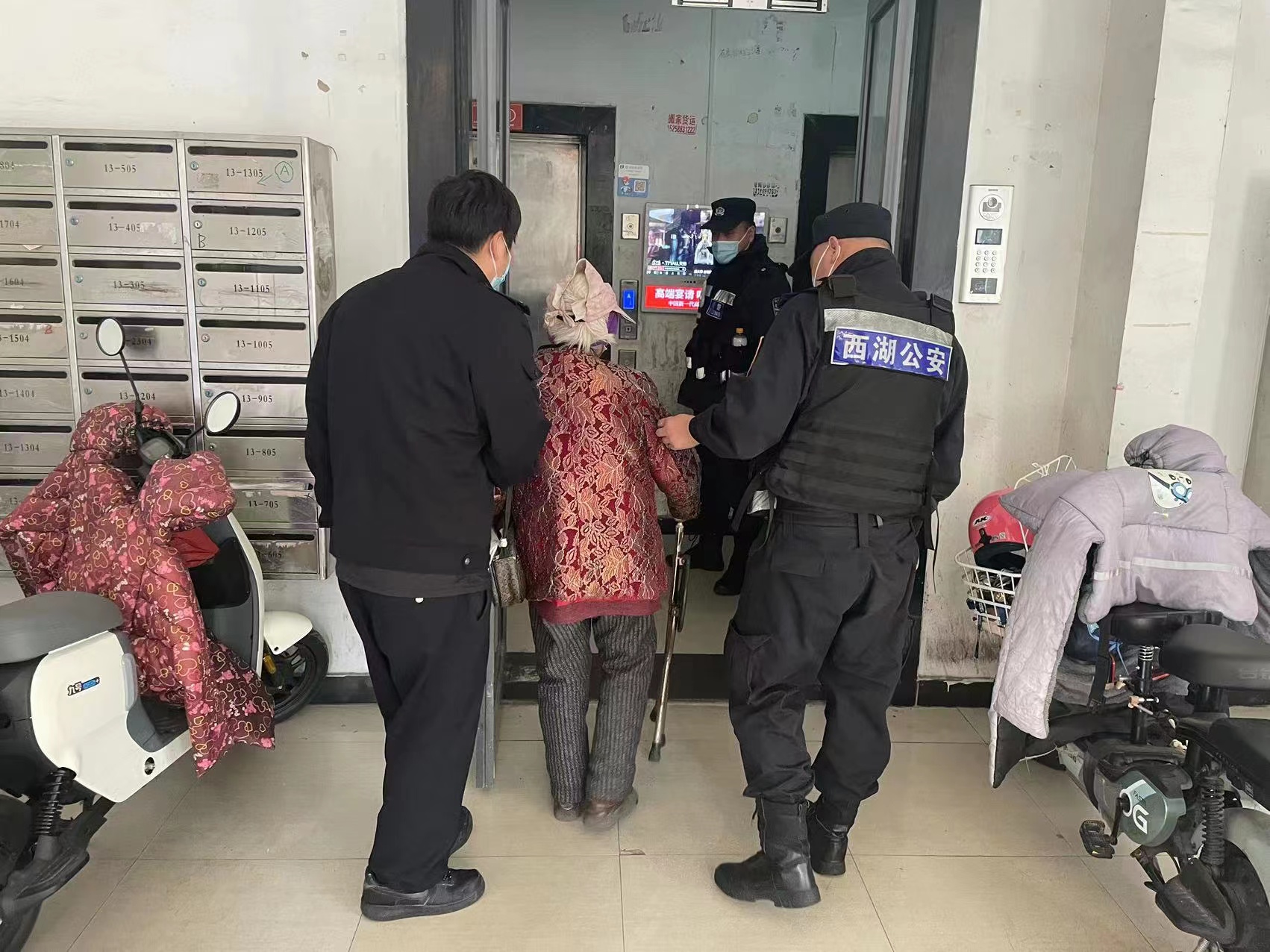 1月4日,古荡派出所接到110报警电话,位于文三西路的某银行有一位老太太声称自己钱被偷了,出警民警接警后立即赶到现场。经交谈发现老太太因年迈体弱,行走不便,而且精神恍惚,无法正常沟通,于是民警将其带回所里。通过后台查询到报警人赵老太太家住三墩某小区。随后,众联安全派驻古荡街道的机动队(简称:CPTU)协助民警一起搀扶老太太将其送到小区住处,安全交到家属手中。
