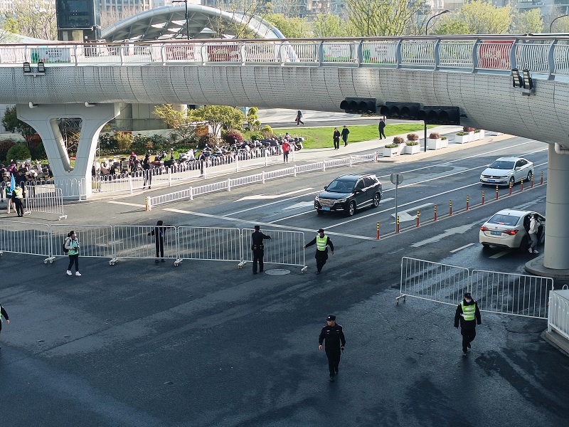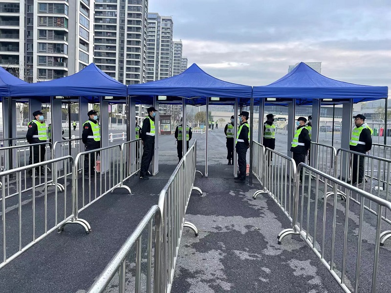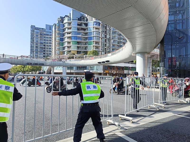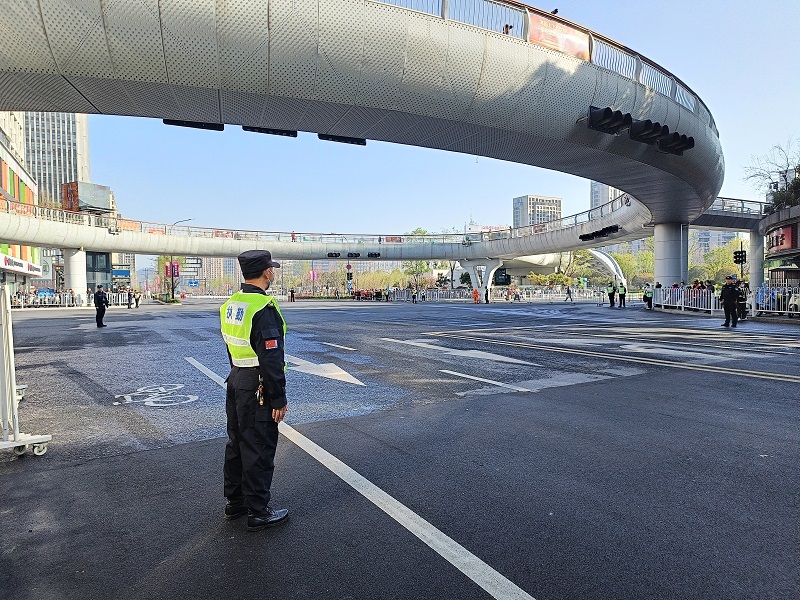 当天清晨6点,公司所有参与本次安保工作人员已到达指定执勤点布防,在道路出入口拉起警戒线、架起铁马,赛事沿线路段以及重点路口卡点每间隔几米就有一名执勤队员在位,配合公安、交警、联合志愿者做好现场人流指引疏导,加强赛事区域秩序维护,加强对周边区域的治安巡逻,做好宣传劝解工作,防止无关人员冲入赛道,维护现场秩序。