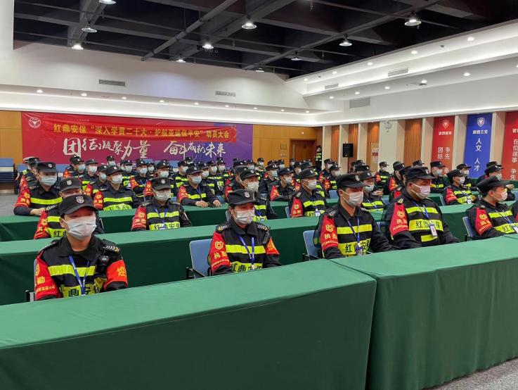 此次动员大会号召红鼎人勇担使命,全力以赴,决战决胜,以最高质量完成公司下达的各项要求。我司也将一直致力于与时代同呼吸、共命运,以最饱满的热情完成“护航亚运”安保工作,为所辖区域负责,给相信红鼎安保的各位交出一份满意答卷。