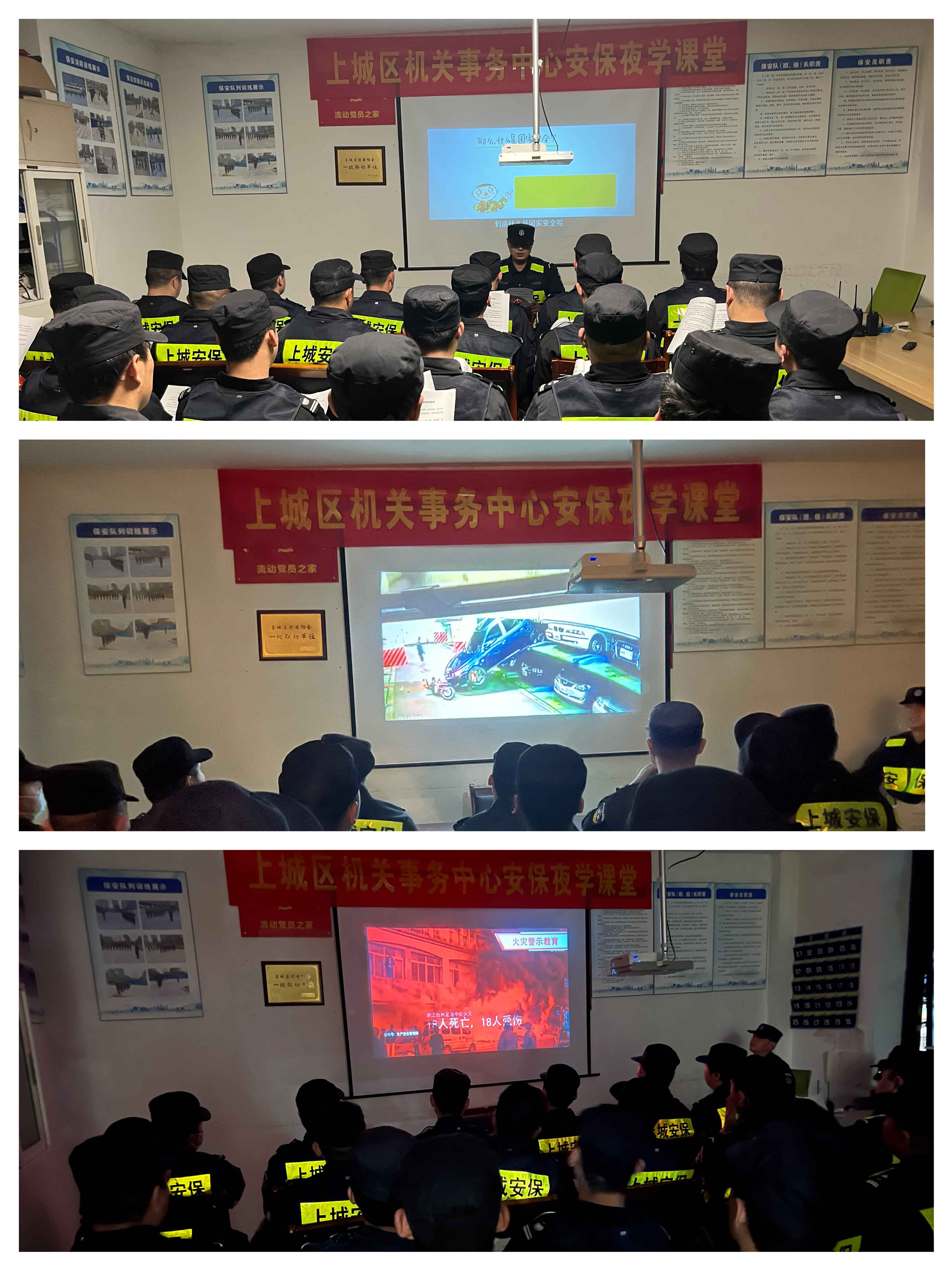 4月12日晚,上城安保集团联合上城区机关事务中心共同举办安保“夜学课堂”,夜学内容包括安保规章制度和保密条例学习及安全事故警示教育片观看。为增强“国家安全主题教育日”宣传效果,上城安保集团联合各甲方单位,根据各点位实际,通过“夜学课堂”的形式,加大国家安全法普及和宣传,让安保队员们有效地了解国家安全的各项内容要求,进一步强化全体队员的责任意识。