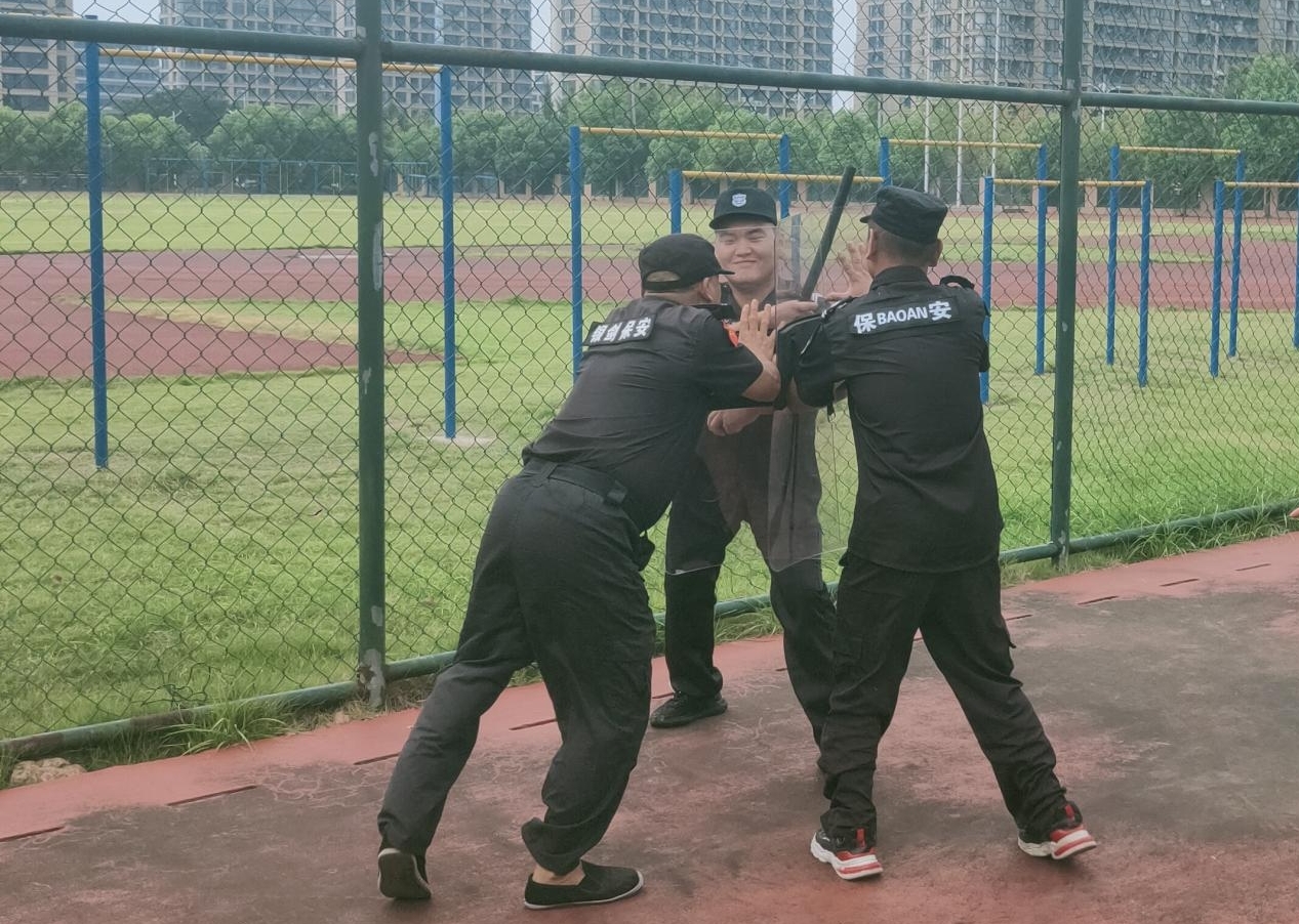督查人员强调了安保岗位上需要注意的“安全预防、自我保护、团队协作”三项意识,亲身示范盾牌、钢叉、警棍、等器械的使用方法和用途,并模拟突发事件现场开展实战应急演练。