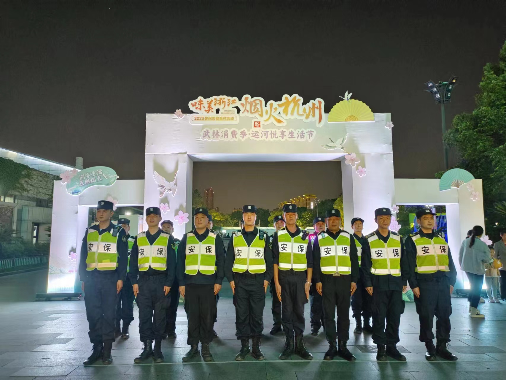 为促消费经济复苏,挖掘传统美食文化。4月28日至5月3日期间,运河广场上举办了一场主题为“味美浙江·烟火杭州”的拱墅悦享生活节。此次活动时间跨度大,又正值人流量比较大的五一假期,现场环境开放复杂,人流容易集中。为确保活动安全、有序进行,公司高度重视,在历时6天的活动过程中,累计派遣保安员百余人次。执勤过程中,公司积极部署安排,严格按照制定的安保方案,在划定的安保点位分别开展秩序守护,执勤队员不怕苦、不怕累,全力以赴投入安保工作,为群众营造舒心、安全的出游环境贡献了力量。