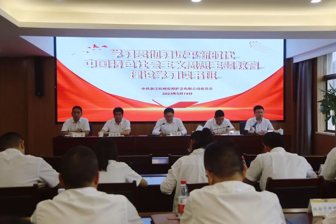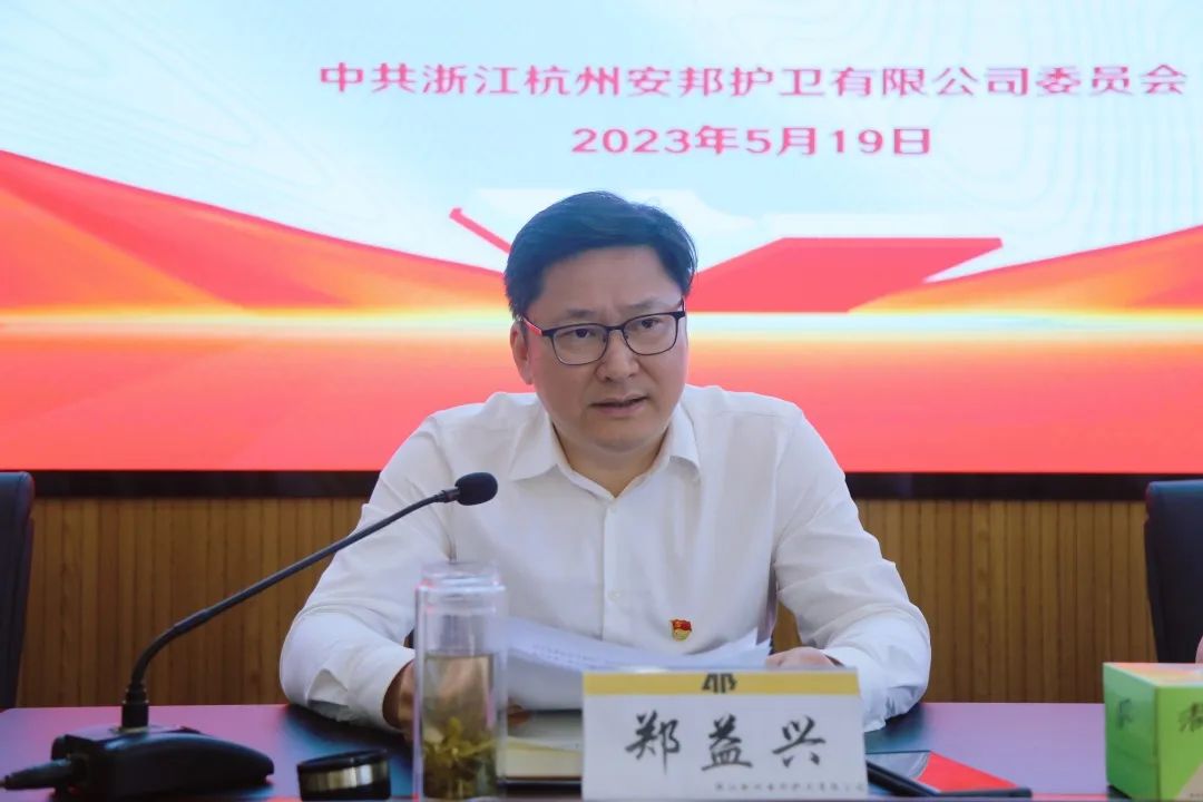 公司党委书记、董事长郑益兴出席启动仪式并讲话,党委副书记、总经理陈良宣读《中共浙江杭州安邦护卫有限公司委员会关于学习贯彻习近平新时代中国特色社会主义思想主题教育理论学习读书班的实施方案》。
