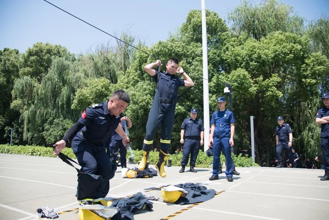 一声“口哨”开始!消防一人两带操作:每一次抛接都是一次生命之花的绽放。