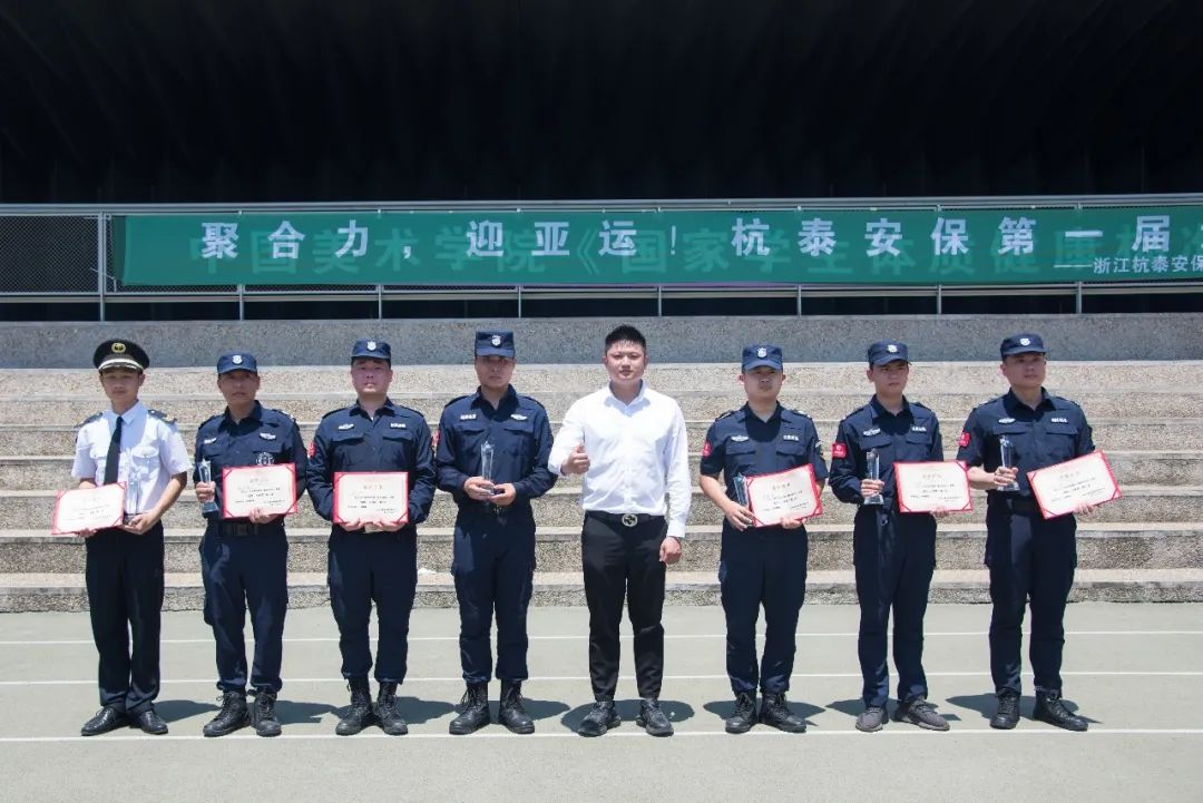经过几小时的激烈角逐,参赛队员们收获了满满的荣誉,在举起奖杯的那一刻,所有的疲惫似乎都烟消云散。一块块奖杯激励着杭泰安保向着更快、更高、更强的境界冲刺,向着“亚运”战场制胜冲锋!