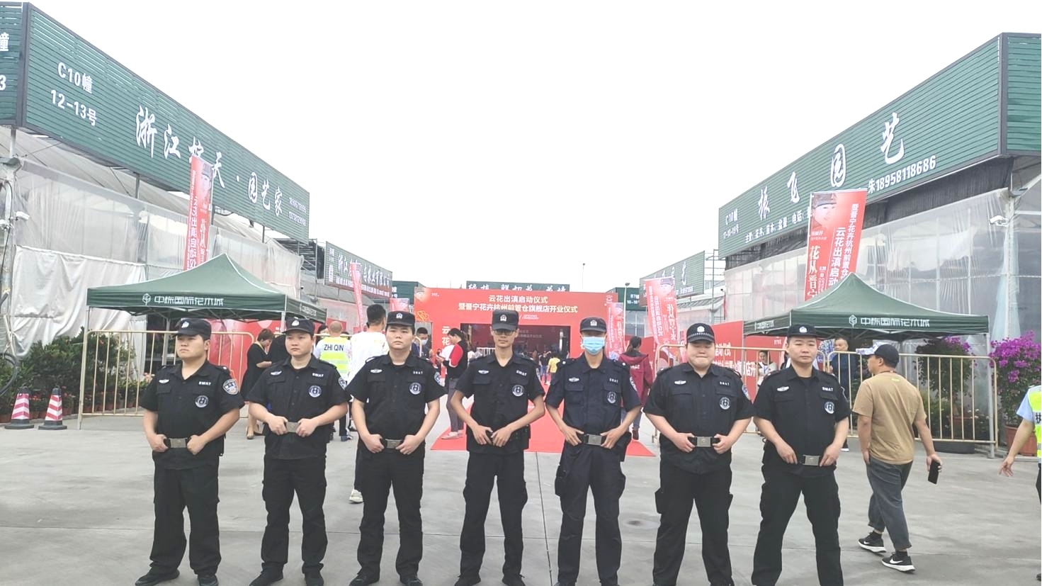 银剑保安的安保任务一直在繁忙有序地进行,5月20日,云花出滇启动仪式暨晋宁花卉杭州前置仓旗舰店开业仪式在杭州中栋国际花木城举办,杭州银剑保安服务有限公司为此次活动保驾护航。