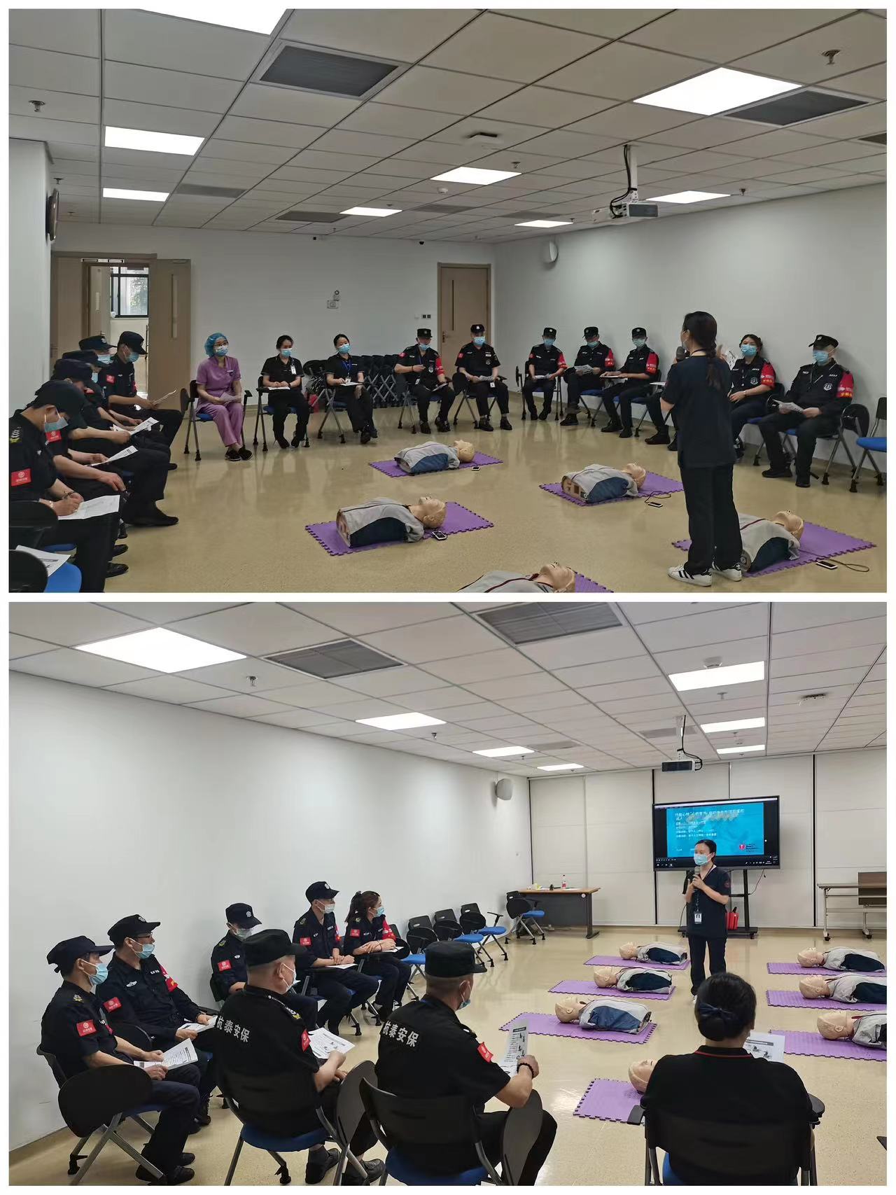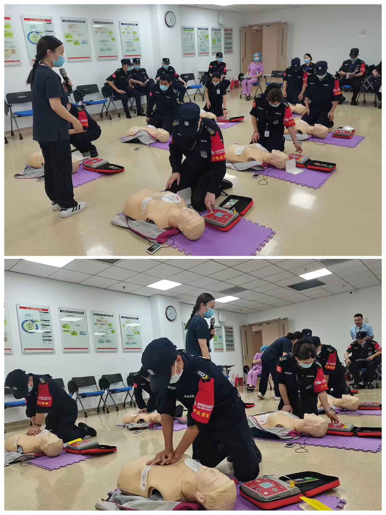 为进一步普及急救知识,提高队员自救、互救意识与能力,6月15日,浙江大学邵逸夫医院庆春院区保卫科、护理部组织,杭泰驻点队员在医院技能培训中心,进行专业化、规范化、标准化的急救技能培训,为迎接杭州亚运盛会平安护航。
