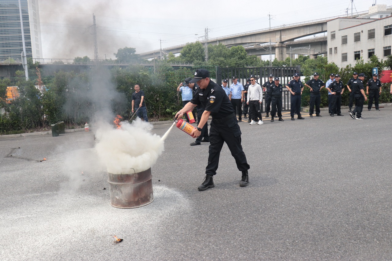 为全力做好杭州亚运消防安全保障工作,维护辖区消防安全形势稳定,普及安全生产知识,不断提升员工消防安全意识和防范能力,着力提高公司系统安全生产监管水平和防控能力,6月14日下午,杭州萧山城市安防保安服务有限公司系统46人在萧山车检站安检车间西侧场地开展消防安全演练活动。本次活动进行逃生救援演习、灭火器实操演练、消防水带连接出水演练3个项目的现场操演。现场人员踊跃参加各项活动、认真学习消防技能,活动有序开展,进一步验证公司应急预案有效性,增强员工消防管控能力,为亚运保障工作打下坚实基础。