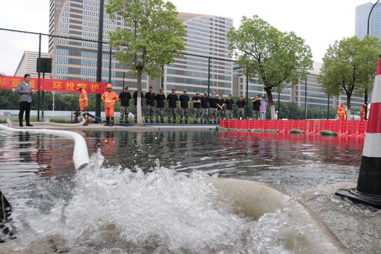 为了进一步落实“迎亚运 保平安”城市应急保障预案要求,提升城市防汛排涝综合应急组织能力和反应能力,6月30日,杭州市萧山区区环投集团与盈丰街道联合开展“迎亚运、保平安”城市防汛综合演练活动,杭州萧山城市安防保安服务有限公司参加本次演练负责大型排水车排水任务。