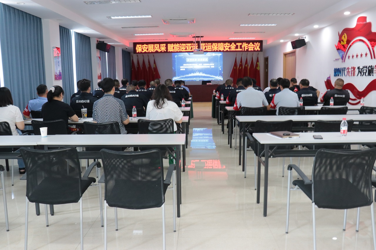 公司总经理助理陈柏明主持会议,传达区公安分局“亚运安保保安业通报部署会”会议精神,并布置相关工作。